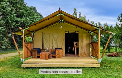 Vous randonnez à vélo ou à pieds et ne souhaitez pas vous charger ? Nos tentes lodges sont faites pour vous! Un couchage confortable dans un vrai lit et une place en dessous pour ranger votre vélo, nos tentes lodges surélevées vous attendent pour une pause cocooning nature et confortable durant votre circuit à vélo.